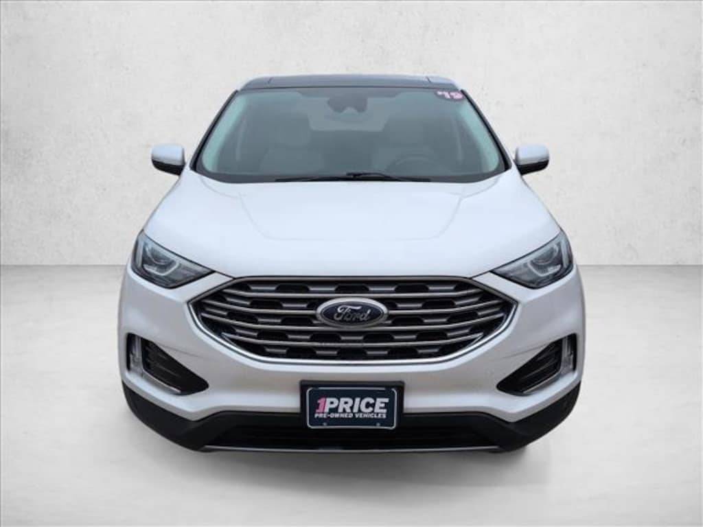 Check out this pre-owned 2019 Ford Edge we recently got in. This Ford includes: FRONT LICENSE PLATE BRACKET CERAMIC, LEATHER-TRIMMED HEATED SPORT BUCKET SEATS Seat Memory Power Passenger Seat Power Driver Seat Heated Front Seat(s) Passenger Adjustable Lumbar Leather Seats Driver Adjustable Lumbar Bucket Seats TRANSMISSION: 8-SPEED AUTOMATIC 8-Speed A/T Transmission w/Dual Shift Mode A/T EQUIPMENT GROUP 300A Transmission w/Dual Shift Mode ENGINE: TWIN-SCROLL 2.0L ECOBOOST 4 Cylinder Engine Gasoline Fuel Turbocharged WHITE PLATINUM METALLIC TRI-COAT PANORAMIC VISTA ROOF Generic Sun/Moonroof Sun/Moonroof Dual Moonroof WHEELS: 20 BRIGHT-MACHINED ALUMINUM Tires - Front Performance Aluminum Wheels Tires - Rear Performance *Note - For third party subscriptions or services, please contact the dealer for more information.* This Ford Edge Titanium is an incredibly versatile vehicle that is a must have for any family. There is no reason why you shouldn't buy this Ford Edge Titanium. It is incomparable for the price and quality. You've found the one you've been looking for. Your dream car.
